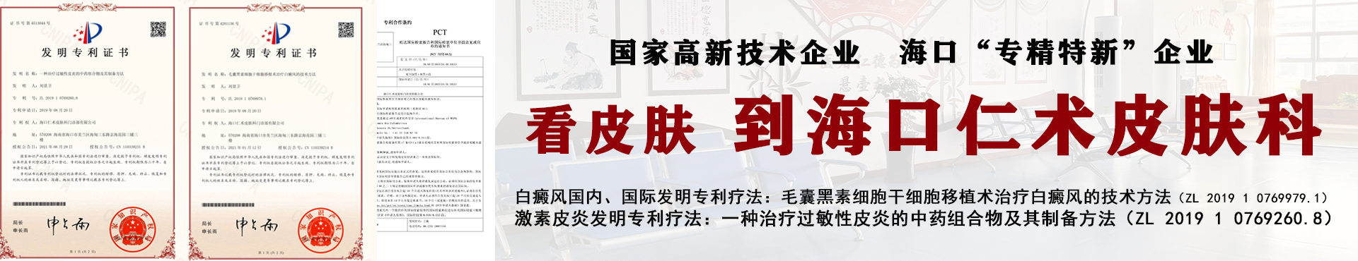 海口仁術皮膚科門診部有限公司是國家知識産權優勢企業,國家高新技術企業,海口市“專精特新”企業,海南省科技型中小企業,擁有白癜風治療國内、國際專利技術——毛囊黑素細胞幹細胞移植術治療白...[詳細]